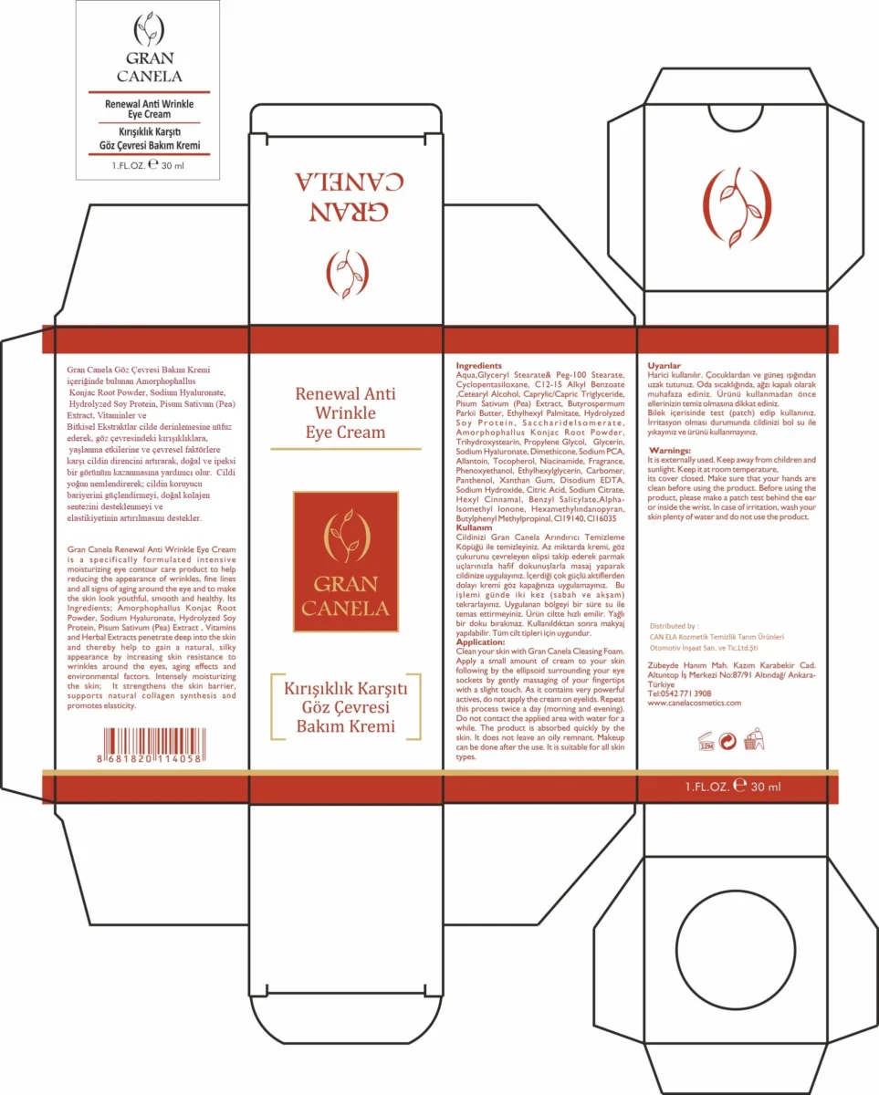 Gran Canela Kırışıklık Karşıtı Göz Çevresi Bakım Kremi, göz çevresindeki kırışıklıkları ve yaşlanma belirtilerini hafifleten özel bir formülle geliştirilmiş yoğun nemlendirici bir kremdir.