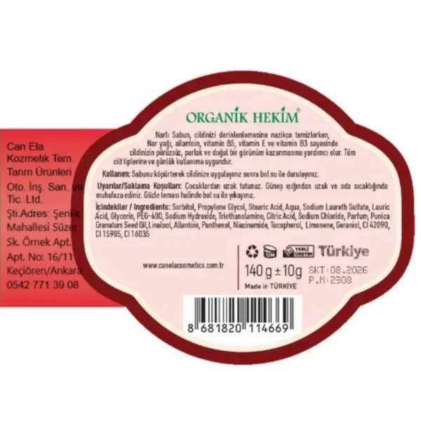 Orijinal fiyat: 225,00₺.210,00₺Şu andaki fiyat: 210,00₺.Organik Hekim Narlı Sabun 140 Gr