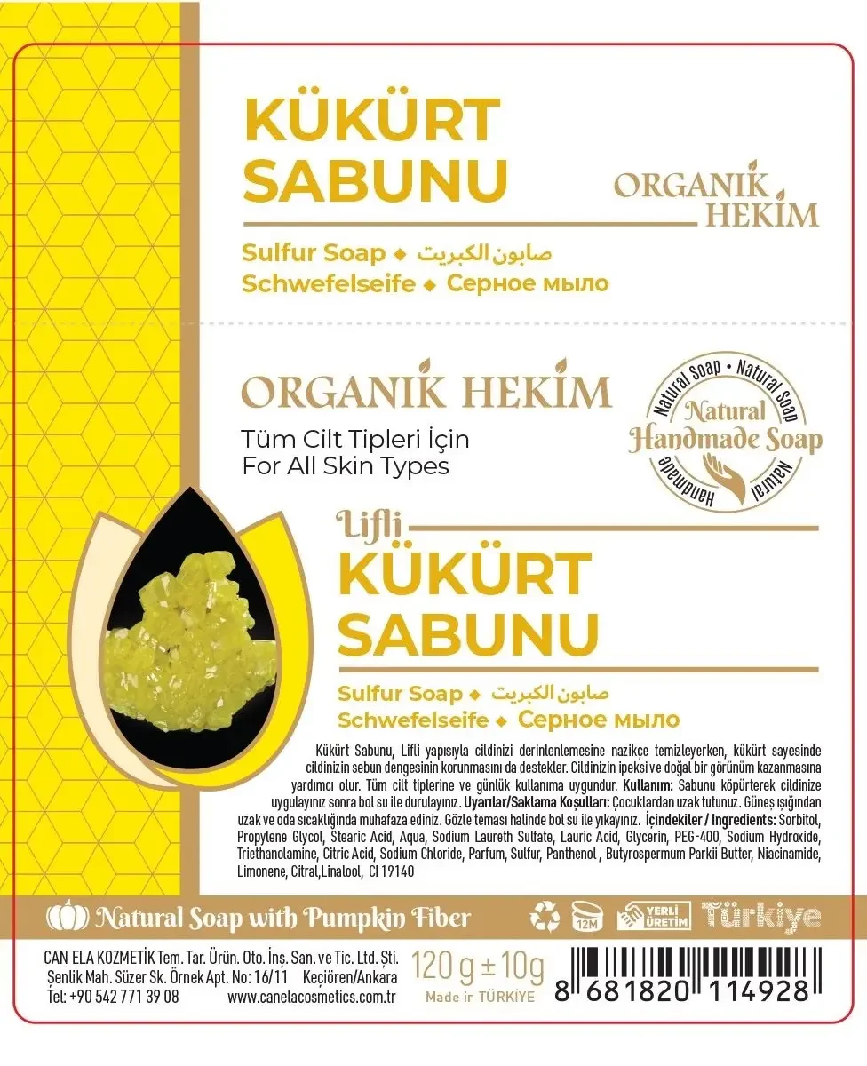 Organik Hekim Lifli Kükürt Sabunu, kükürdün doğal arındırıcı etkisiyle cildin derinlemesine temizlenmesini sağlayan güçlü bir bakım sabunudur. Kükürt, cildin koruyucu bariyerini destekler, yağ dengesini düzenler ve sivilce oluşumunu önlemeye yardımcı olur.